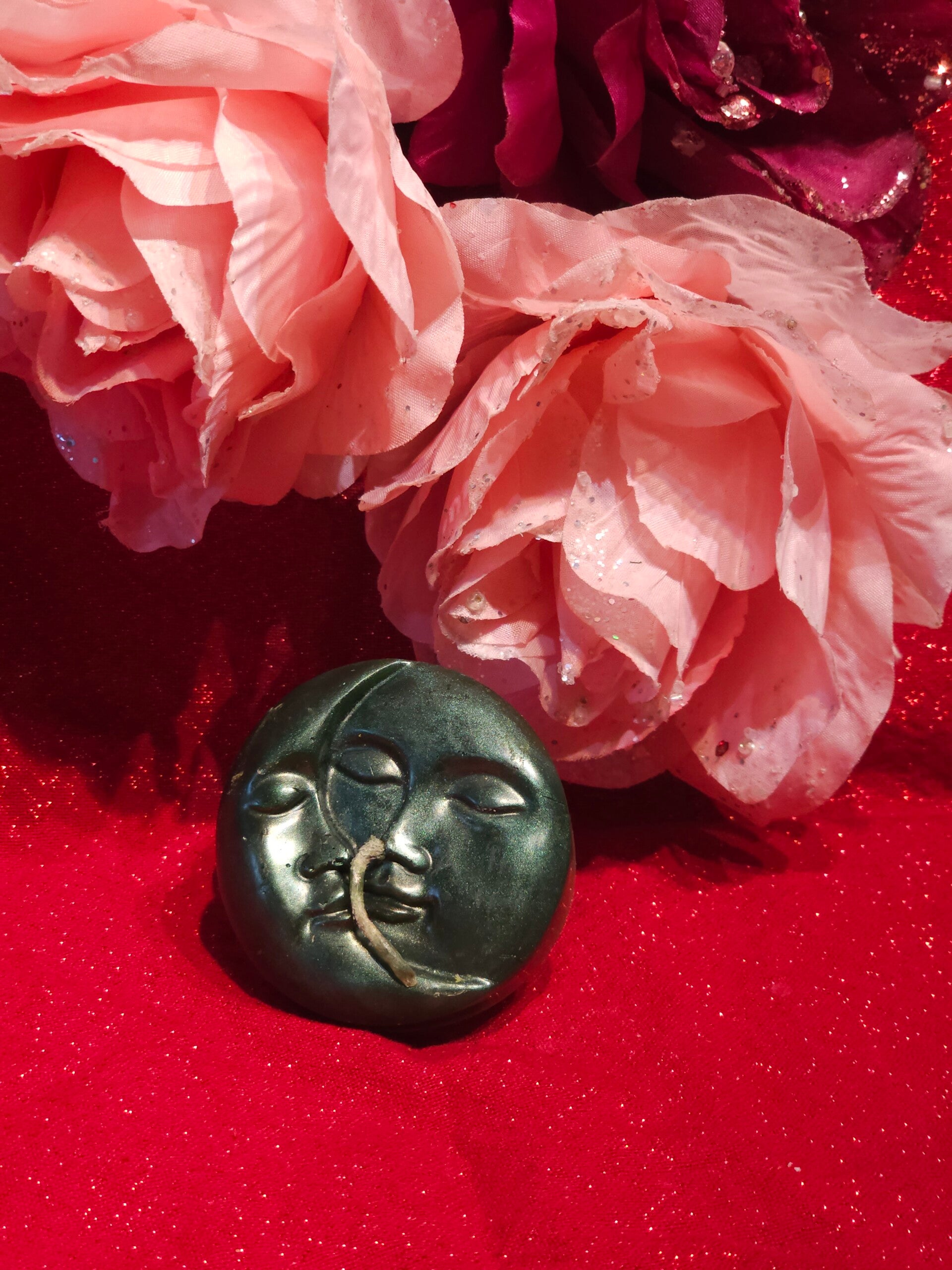 Beautifully hand crafted & decorated Moon Sun Face candles, comes in a range of colours, all made with a specific spiritual purpose and made to order.